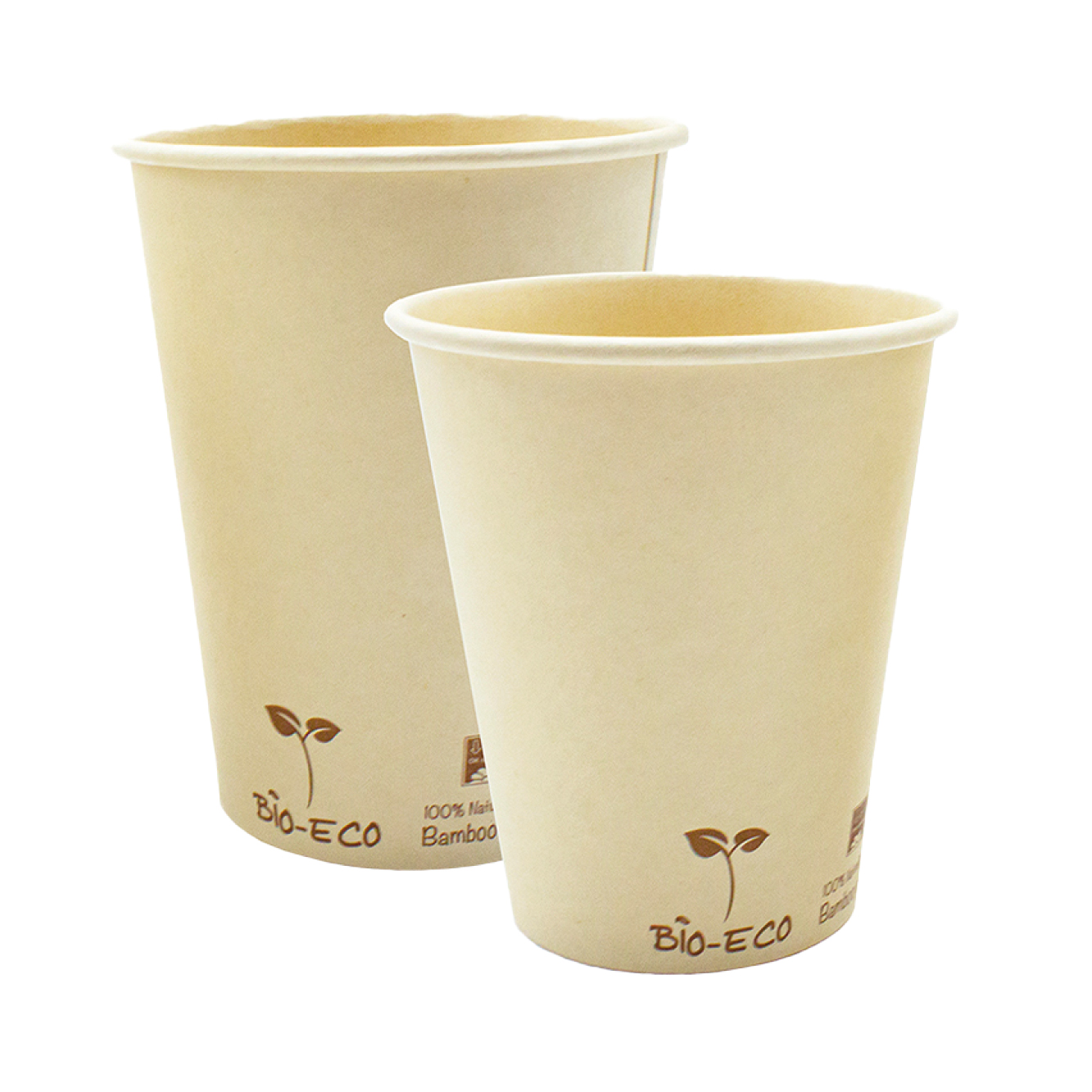 Bicchiere Bio Eco in polpa di bamboo naturale 200 ml compostabile rivestito PLA. Cartone da 2000 pz in 40 file da 50
